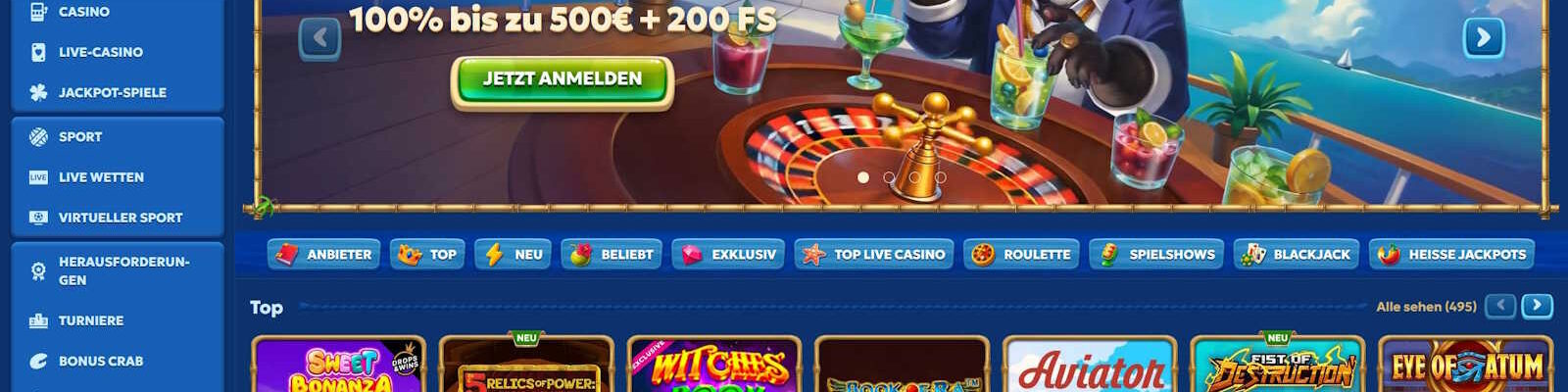 Bonus bis 500 € + 200 FS + Bonus Crab