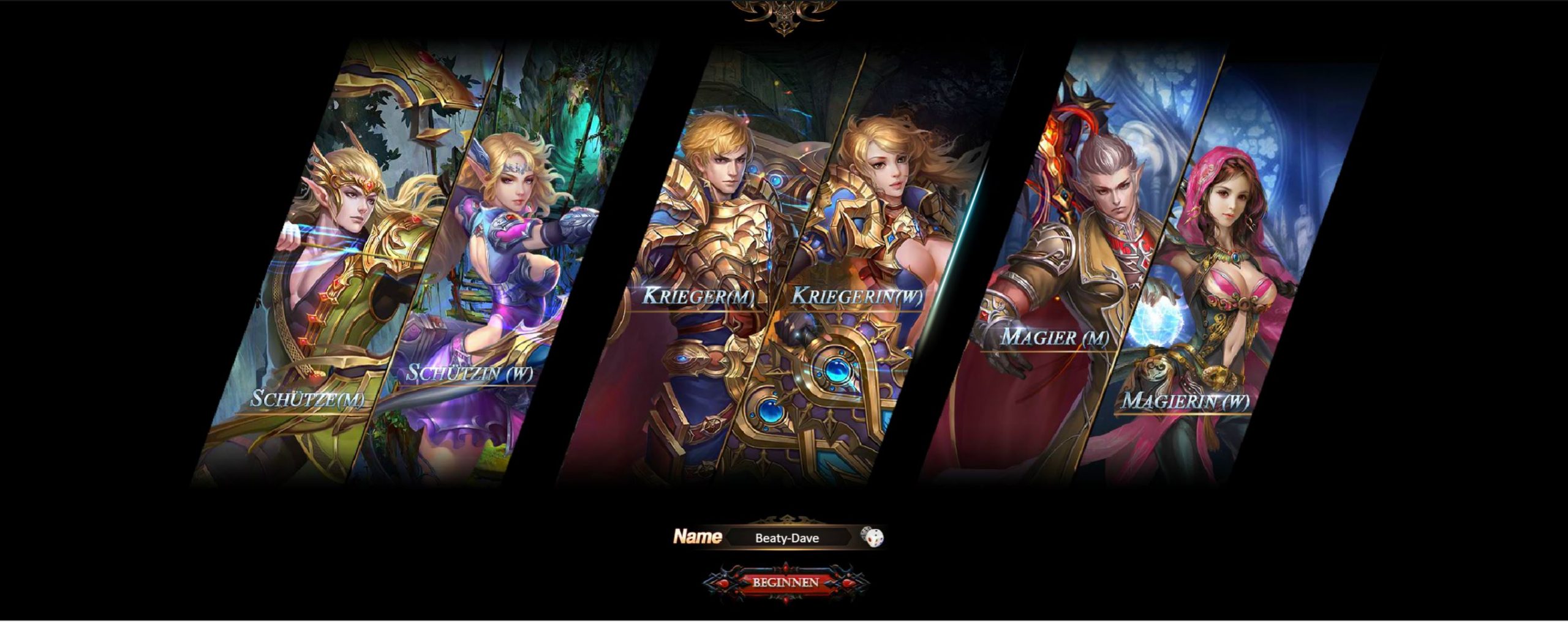 Aufstieg der Drachen klingt auch wie der letztere Titel von Esprit Games ziemlich verlockend. Bevor es aber losgehen kann müssen wir einen Charakter erstellen. Die Erstellung ist in dem Fall ziemlich simpel, denn es gibt nur drei Klassen. Die Wahl steht zwischen Bogenschützen, Kriegern und Magiern. Weitere Anpassungen bis auf die Wahl des Geschlechts gibt es nicht. Etwas schade, denn Personalisierungen machen einen eigenen Charakter erst besonders spannend.