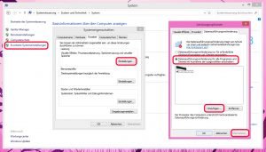 - Linkerhalb auf “Erweiterte Systemeinstellungen” klicken, um ein neues Dialogfenster zu öffnen.